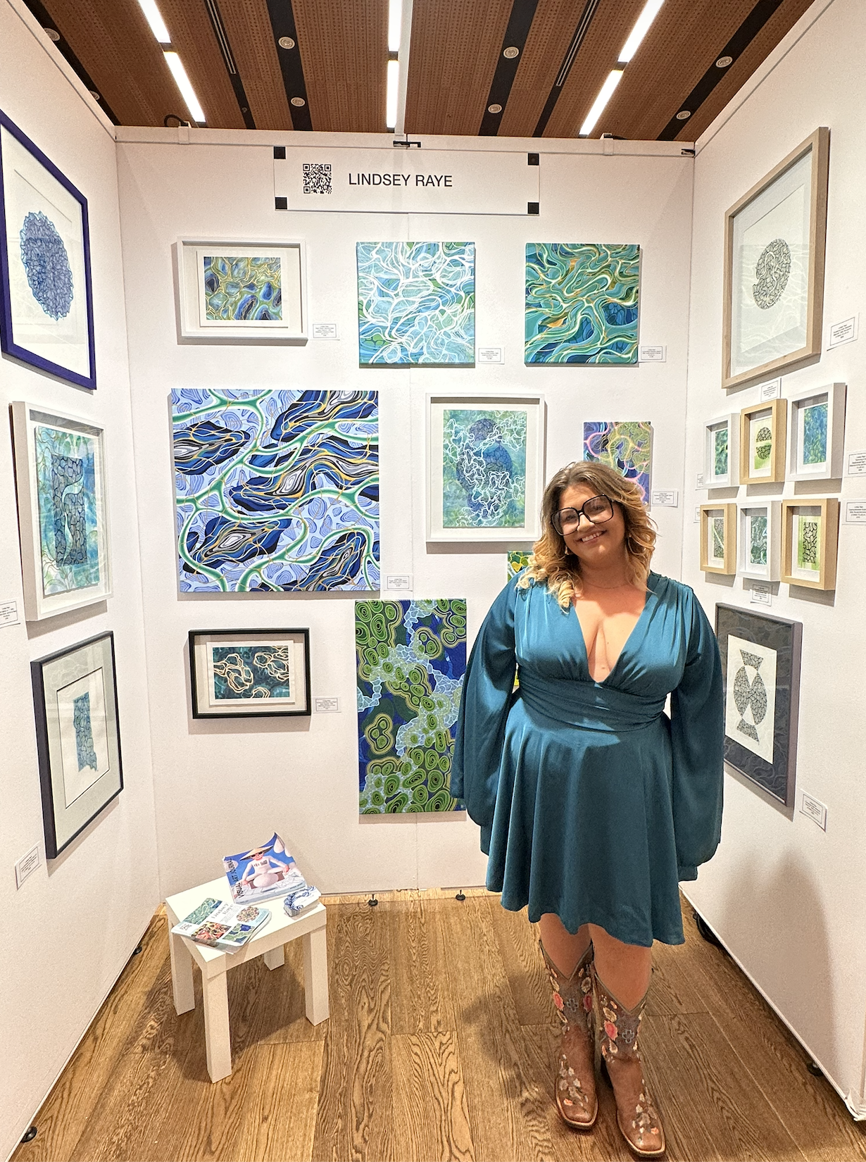 Known for her ability to create captivating and immersive abstract scapes, her attention to details drives her creative process as she creates unique and thought-provoking art. Working from her own reference photos, memories and imagination, Lindsey Raye’s work combines these different elements into a cohesive whole, which challenges the viewer to dive in deeply and find their own personal relationship to the new world in which they have arrived.